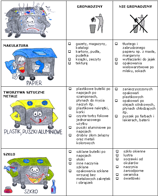 Jest jeszcze wiele pracy w tej dziedzinie, ale z każdym dniem liczba odzyskanych surowców jak i uczestników programu segregacji sukcesywnie wzrasta. Od września 2001 roku zachęcamy mieszkańców do selektywnej zbiórki.
